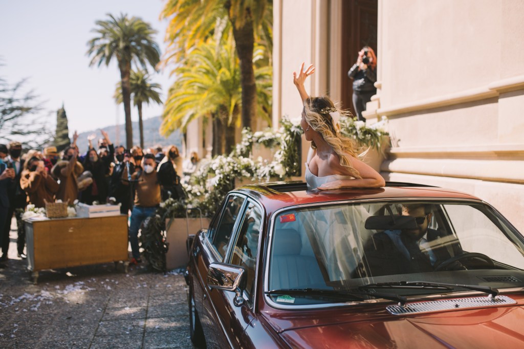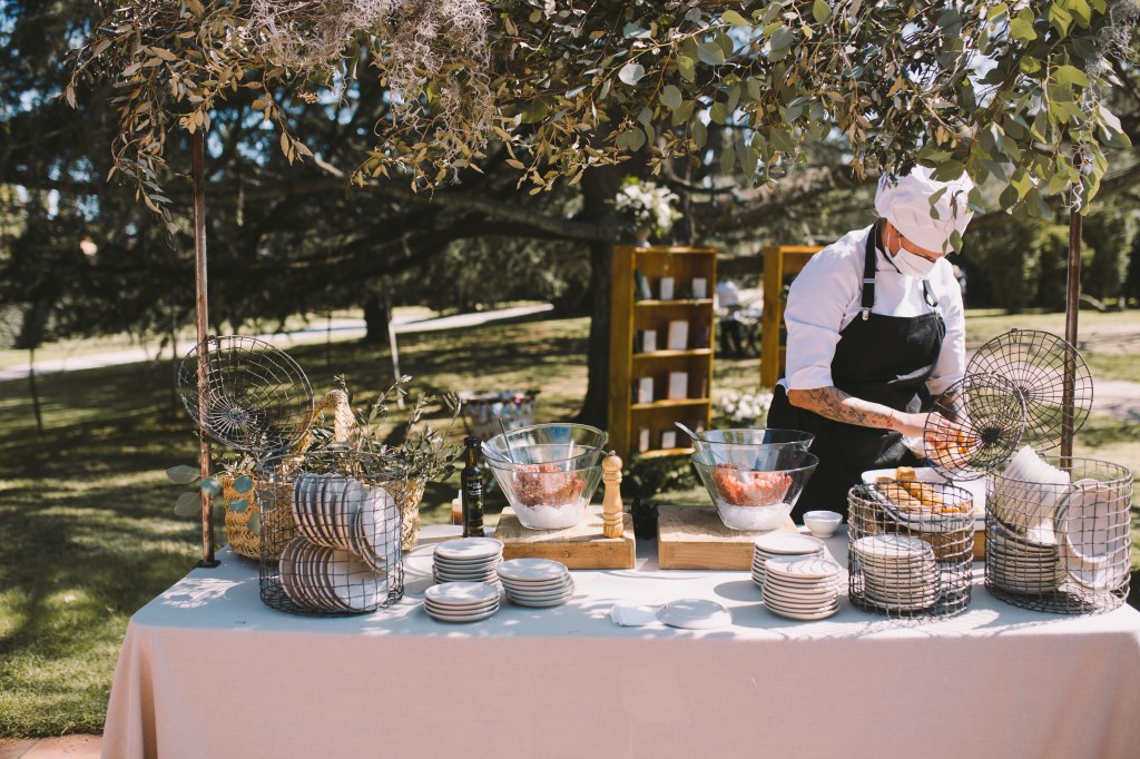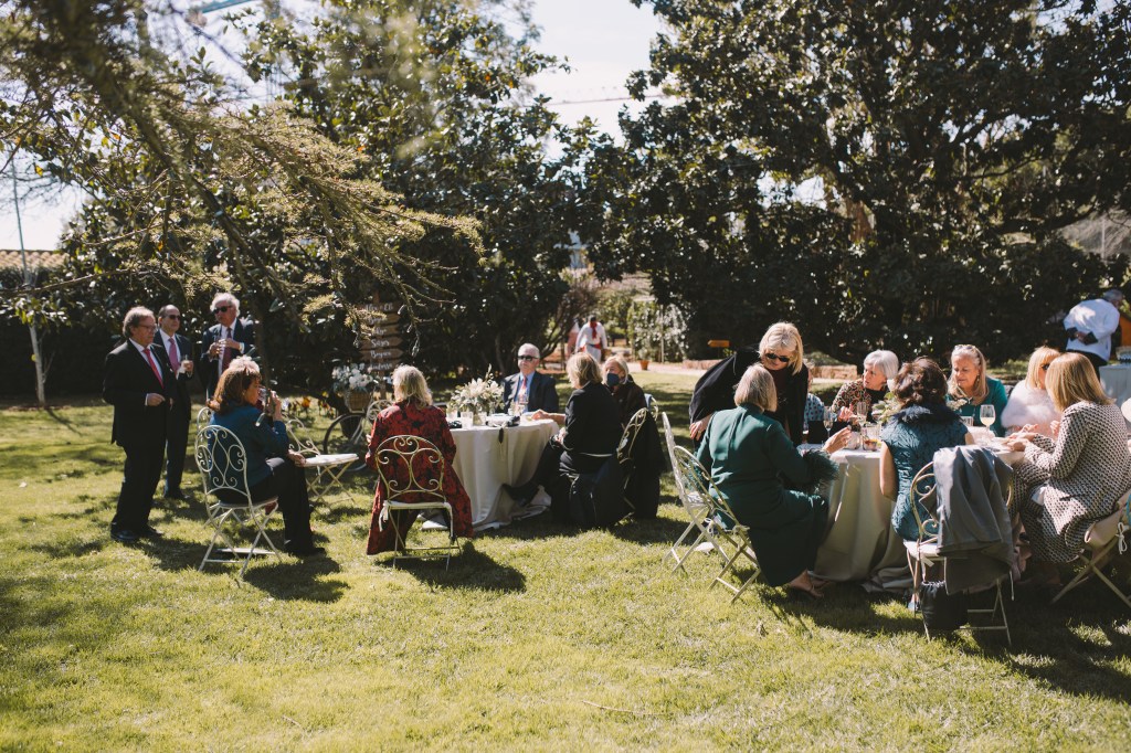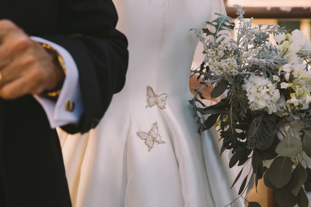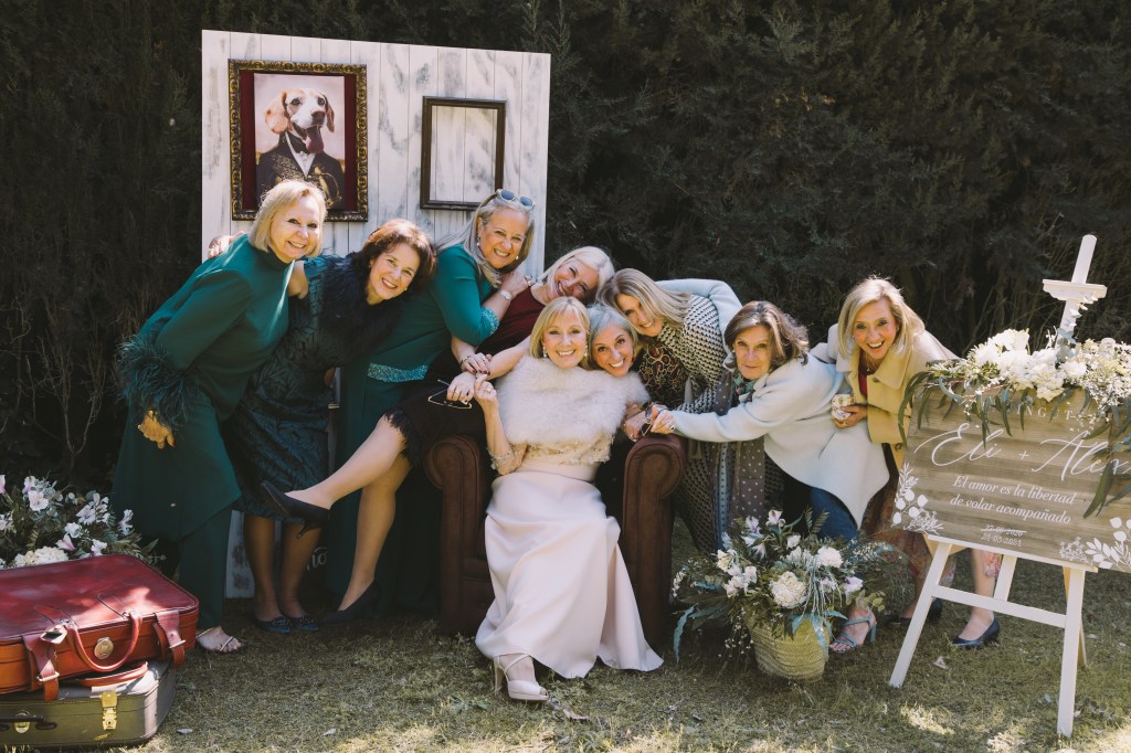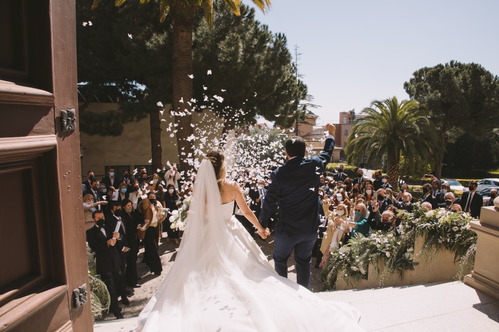 A modo de anécdota Eli me cuenta que se pasó toda la ceremonia con el vestido desabrochado. Con los nervios no consiguieron cerrarlo por completo antes de salir de casa y la decoradora de la Masía fue la que finalmente consiguió desatascar la cremallera y terminar de abrochar su vestido, afortunadamente nadie se dio cuenta. Durante toda la celebración se conectaron en streaming con la familia de Alex en Colombia, ya que debido a las restricciones no pudieron asistir presencialmente a la celebración.