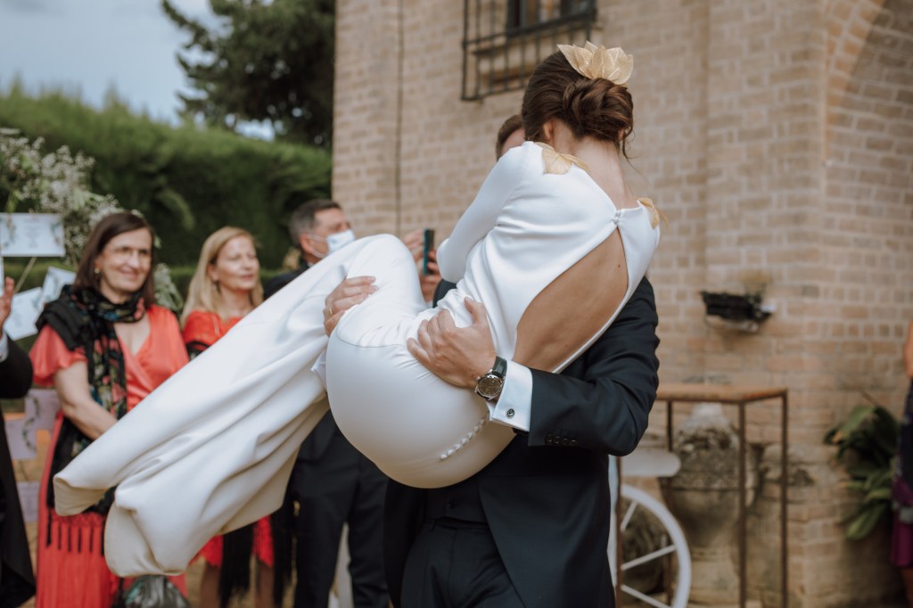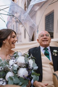 Me cuenta Teresa que hubo muchos momentos emotivos y especiales, pero recuerda con mucho cariño que de camino a la iglesia junto con su padre en su coche descapotable. Empezó a llover, como no daba tiempo a que subiesen la capota del coche decidieron abrir sus paraguas dentro del coche para no mojarse ¡La gente con la que se iban cruzando por la calle no paraba de aplaudirles! Un momento inolvidable.