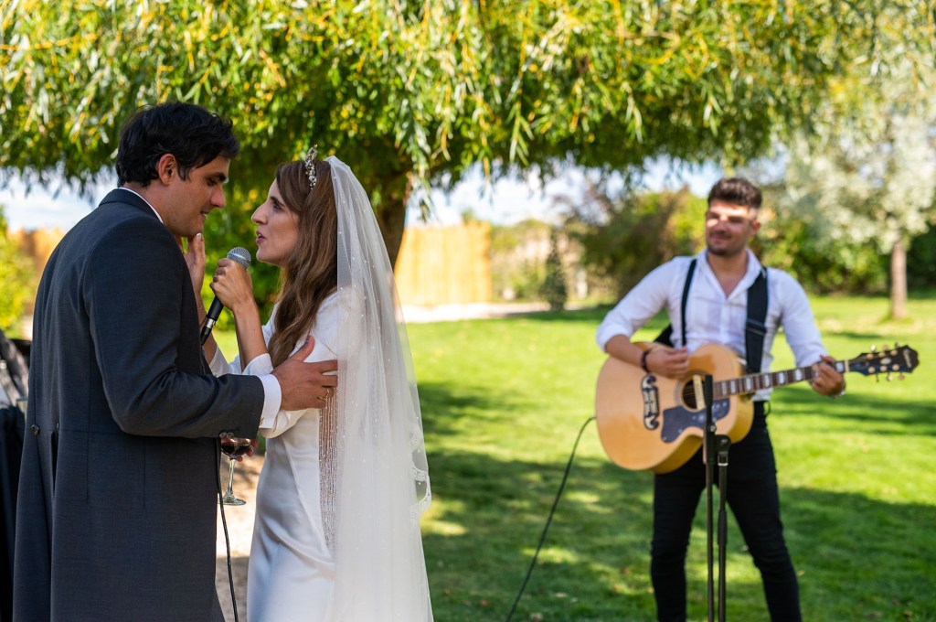 Ambos están muy relacionados con el mundo de la música, María se ha dedicado durante 10 años a este mundo y Dani toca varios instrumentos, por eso era un elemento fundamental que tenía que estar presente el día de su boda.