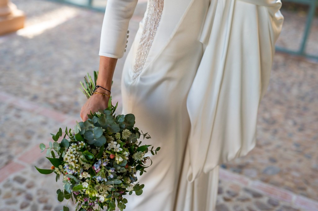 El ramo de la novia, uno de los elementos más especiales del look, se lo hicieron en Floreale. En concreto se lo hizo su tía que trabaja en Floreale, con lo cual adquirió un significado aún mayor.