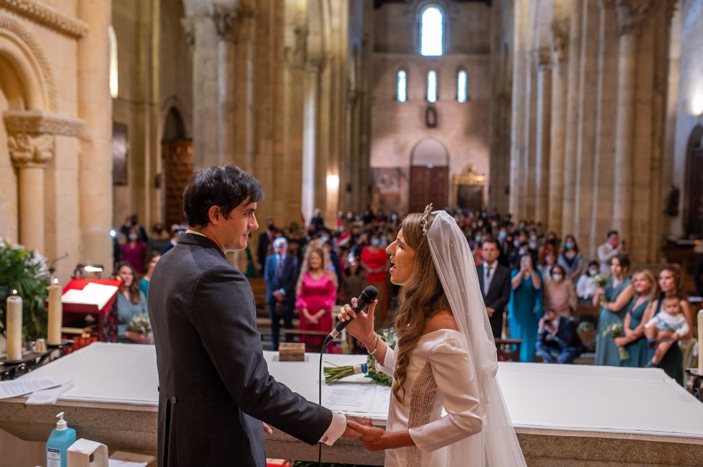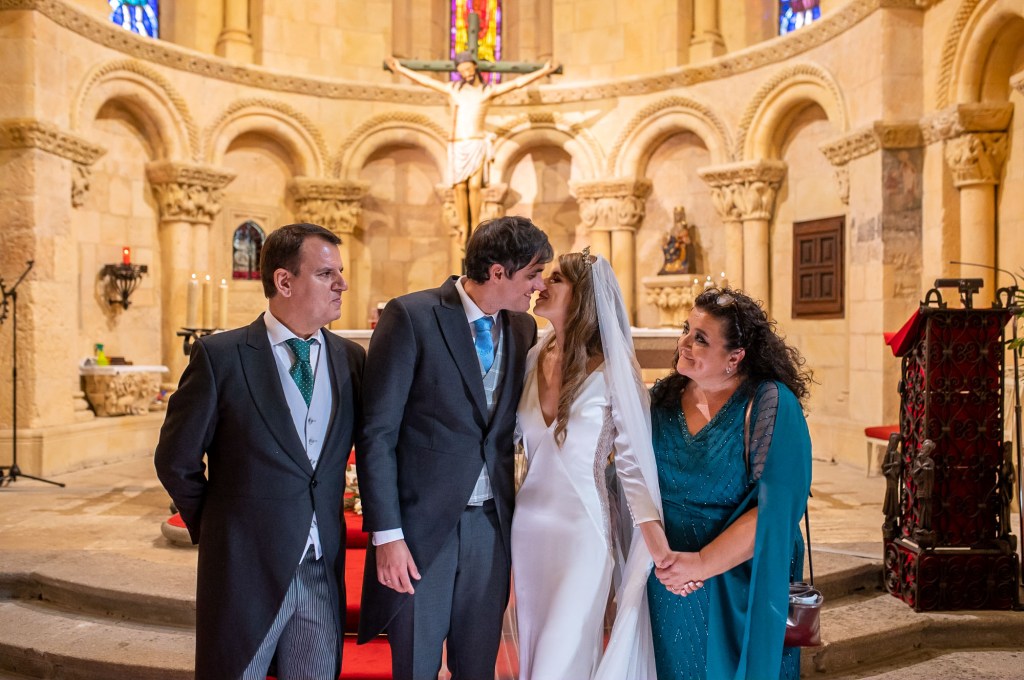 Dos semana antes de la boda se quedaron sin voz femenina para la iglesia, esto dio pie a que María, por sorpresa, le cantase al novio tras el si quiero creando un momento inolvidable.