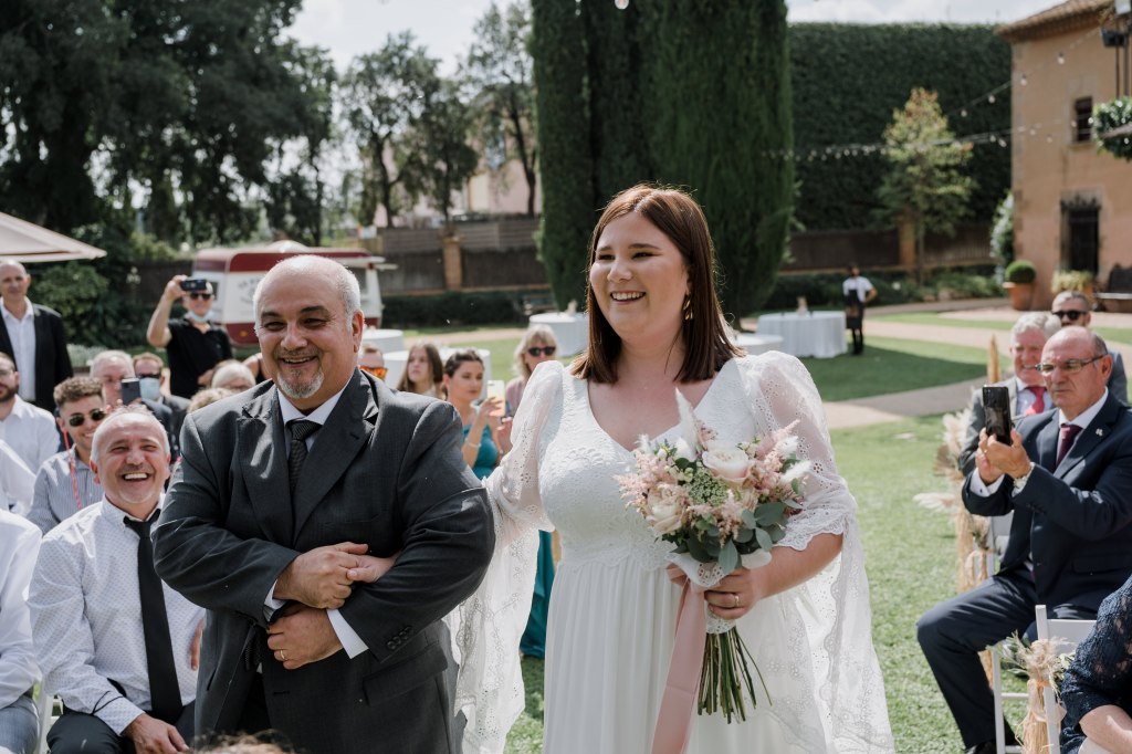 Toda su boda estuvo cargada de momentos especiales, pero Lorena me cuenta que hubo dos de ellos que siempre recordará. Antes de salir de casa entregó a su padre un pañuelo bordado por Villa Alegría Homelinen con un trocito de una canción muy especial para ellos, algo que su padre guardará toda la vida. Otro de los momentos más bonitos que recuerda Lorena fue la reacción de Daniel al verla entrar a la ceremonia agarrada de, brazo de su padre.