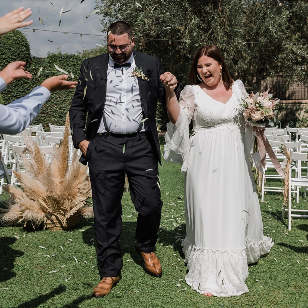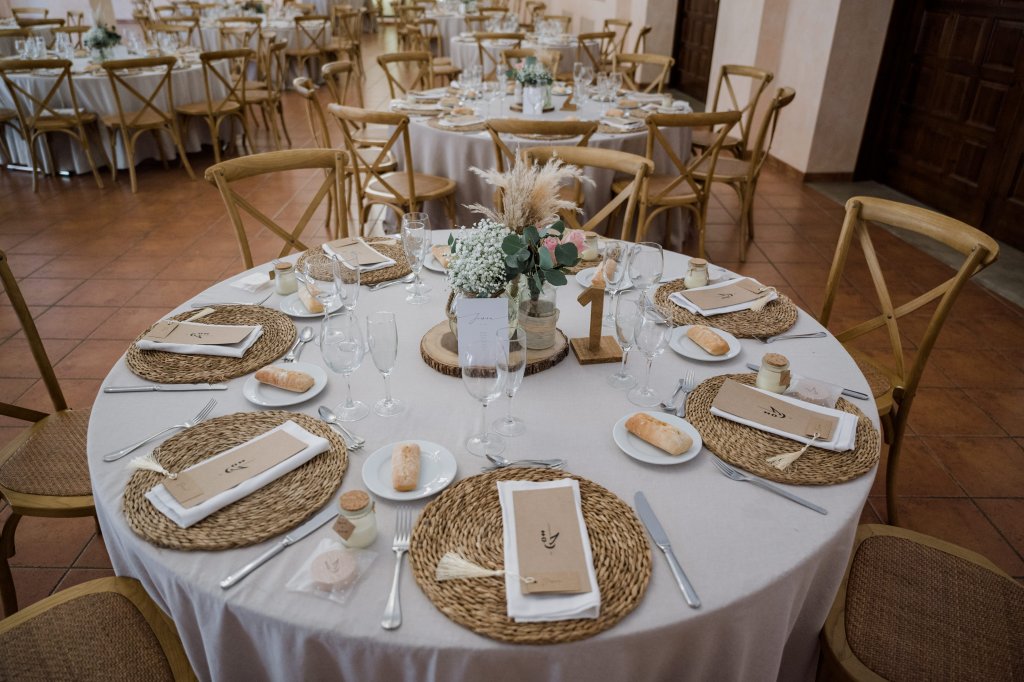 Desde el principio tenían muy claro el tipo de boda que querían celebrar, una boda sencilla, espontánea y natural rodeada de magia. Tenían claro que querían que fuese al aire libre y querían que la decoración fuese fresca donde las hojas de eucalipto, las pampas y las dalias fueran las protagonistas. Debido a las restricciones por el COVID, en el último momento tuvieron que decidir cambiar el horario de la celebración, todo estaba preparado para celebrar una boda de tarde pero finalmente celebraron una boda de día, decisión de la cual no se arrepienten y que les permitió disfrutar al máximo.