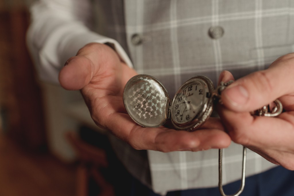 Como complementos especiales le acompañó un reloj de bolsillo, una reliquia familiar, y unos preciosos gemelos de oro regalo de su padre.