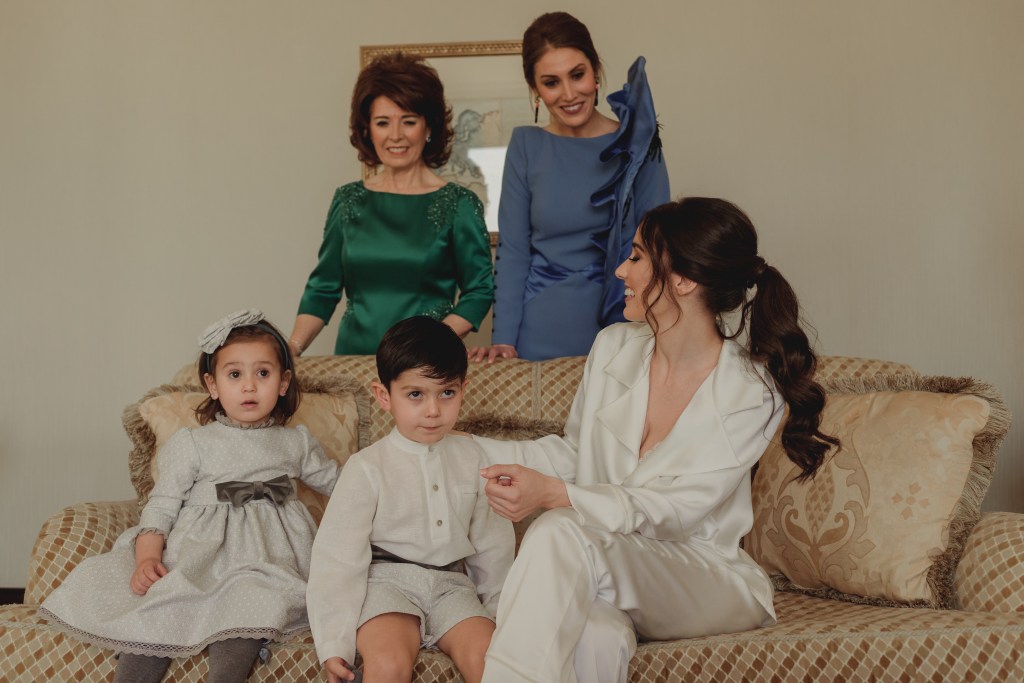 Durante los preparativos previos a su gran día optó por escoger un pijama de lo más cómodo y que además personalizó con sus iniciales y que acompañó con unas alpargatas, todo de la firma Seren Collection.