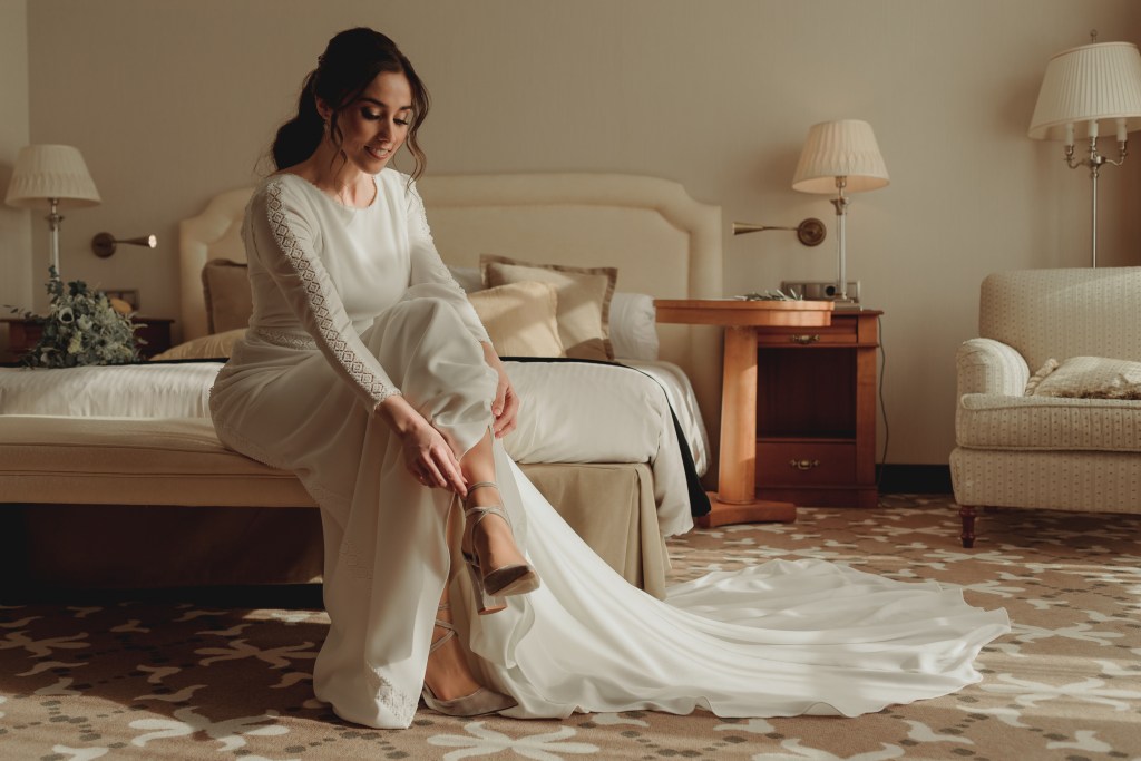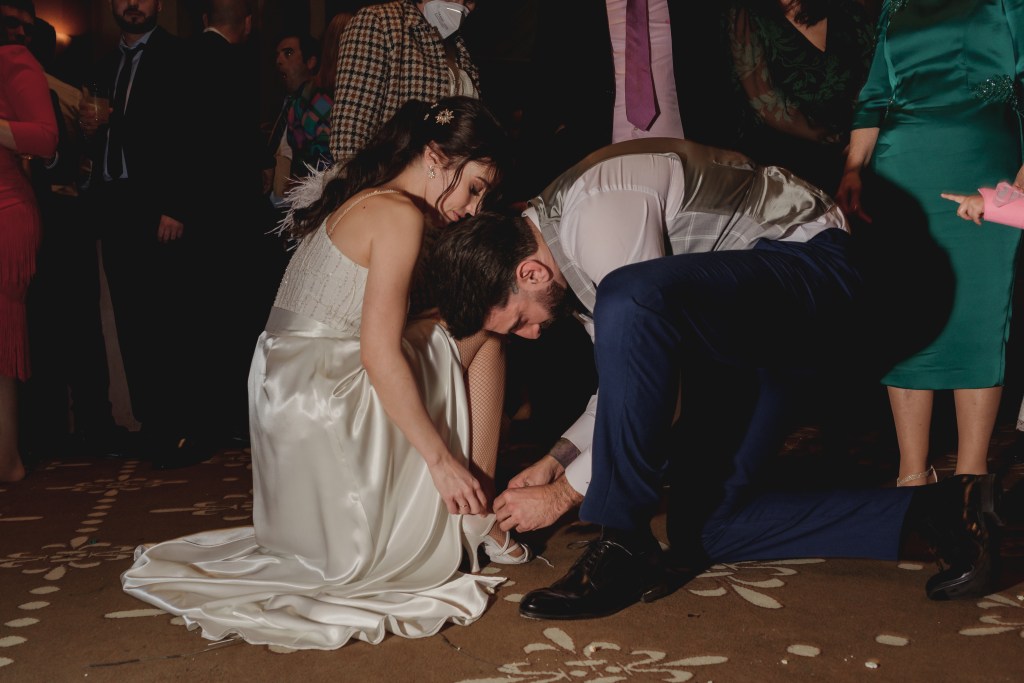 Flor de Asoka fue la firma en la que Gemma confió para sus zapatos, escogió un modelo personalizado que casaba perfectamente con el look aportando ese toque invernal y elegante que iba buscando. Esta firma destaca por la comodidad de sus diseños con los que novias e invitadas pueden disfrutar de la fiesta hasta el final.