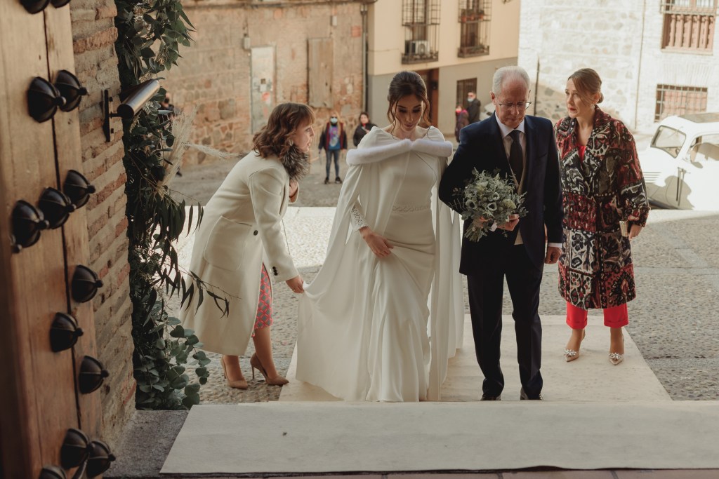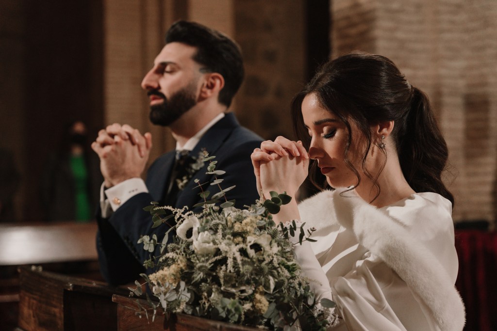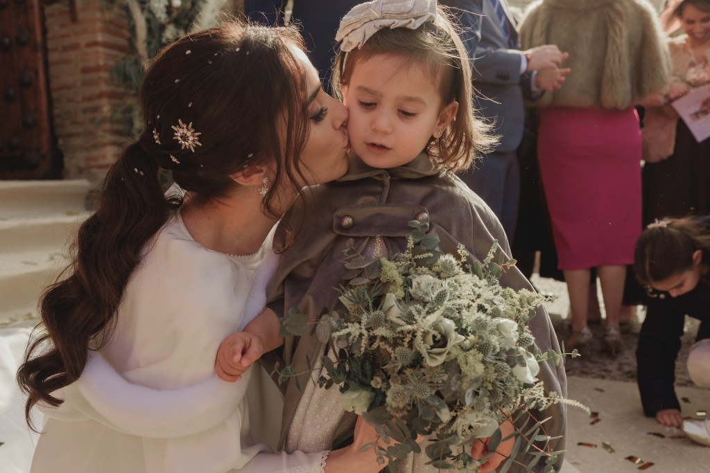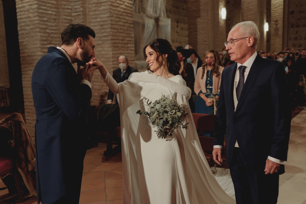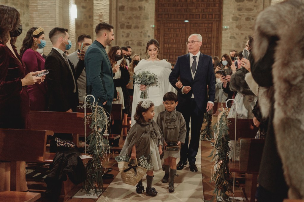 Todo el equipo de Adolfo Floristas fue el encargado de realizar la decoración floral de la iglesia siguiendo la línea que ellos buscaban: algo sencillo, elegante, natural e invernal. Para ello combinaron eucaliptos cinerea, gossypium y pampas secas que combinaron con toques de blanco y oro para unificar la decoración. Rosch&Gil fueron el cuarteto de cuerda encargado de amenizar la preciosa ceremonia.
