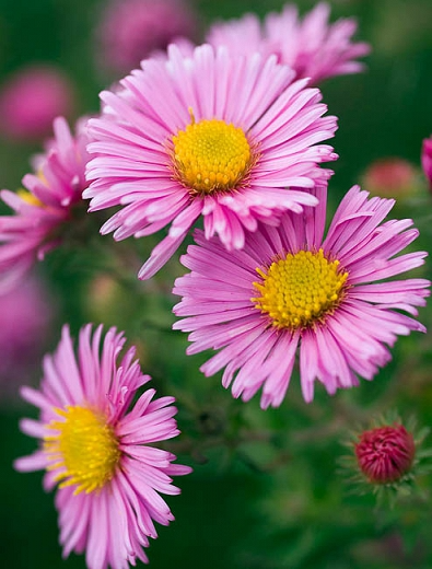 Las especies más características de esta familia en otoño florecen en tonos blanco, morado o rojo. A veces se pueden confundir sus flores con algunas como las dalias, los crisantemos o las margaritas. Lo más característico es que su floración comienza en verano y aguanta muy bien hasta bien entrado el invierno.