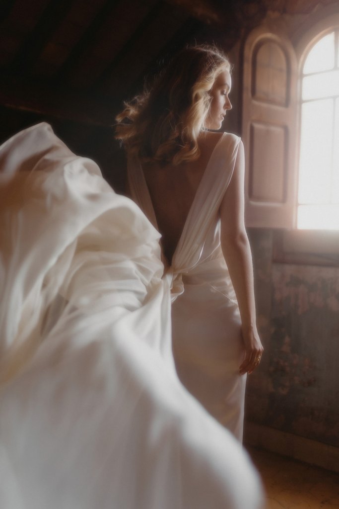 Cada una de las piezas de la diseñadora es elaboradas a mano y a medida para cada una de las novias en su atelier de Barcelona. Los diseños de Irene Toledano se caracterizan por la pureza de las líneas, la sofisticación de los diseños y la elegancia de sus diseños favorecedores. En «Maison Eulalia» la diseñadora busca que la novia destaque por su carácter y personalidad.
